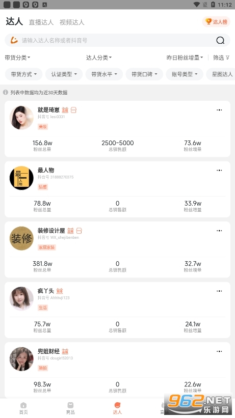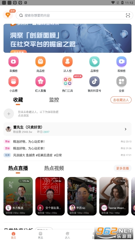 -分析各行业数据流量趋势,定位账号内容,发掘优质带货达人主播。