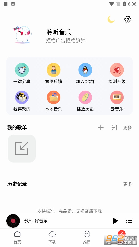 1、海量无损音乐库,享受高品质音频服务;