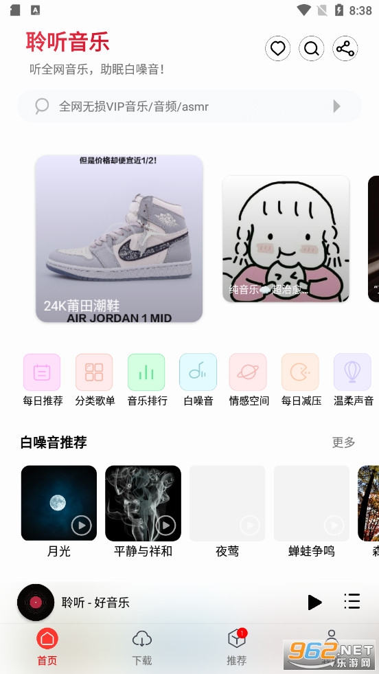 这款软件里不仅有着海量的音乐资源,而且用户们无需付费就能够收听各种歌曲,同时界面非常的简洁也没有任何的广告影响你使用,因此,绝对是你必备听歌神器听音乐的白嫖好选择。此外,该软件还提供了下载、试听、搜索、音乐预测等多种实用功能,并且还有高清mv以及超高的音质来带给你最棒的听觉体验,另外用户们可以在这里还能够搜索到热门歌曲推荐排行榜以及海量无损音乐曲库来体验高品质音乐生活。不仅如此,在聆听音乐还为广大用户们带来了音乐社交、丰富乐坛、场景电台、高清视频等多种音乐播放类型供用户们随意选择使用,同时更是有着富的歌曲乐库和简单的操作方式让你更快得到你想要的歌,有需要此软件的用户们欢迎前来本站免费下载使用~