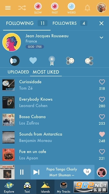 非常好用的老歌音乐播放器软件,海量音乐歌曲资源,用户能够收听到各种有品质的好音乐,选择你感兴趣的国家,聆听那个年代那个国家的音乐吧!