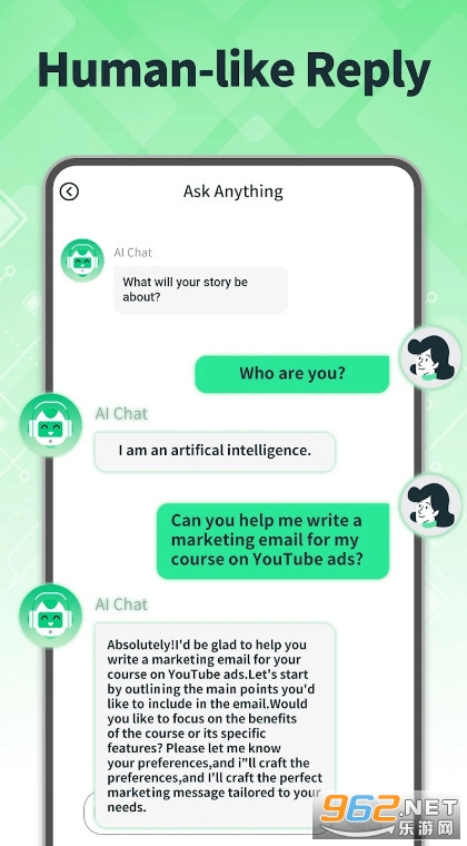 非常好用的ai聊天机器人,可以自动生成各种文案,直接就可以和ai进行交谈,对文字的处理功能很强大,随时进行创作吧!