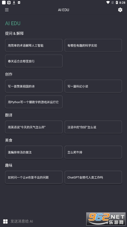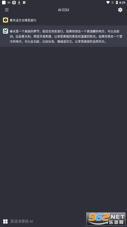 AI EDU它是一款基于外部API开发的一款AI应用,可以提问、聊天,可以写文章、写段子,只需要在下方输入想要写的文章内容,点击发送,等待之后内容就可以生成。