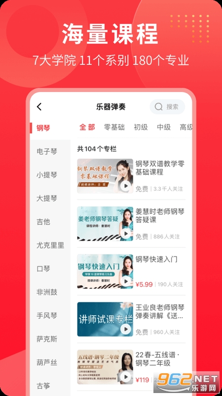 7大学院, 11个系别,180个专业,打造系统化、个性化、品质化和实用化的在线兴趣课程。
