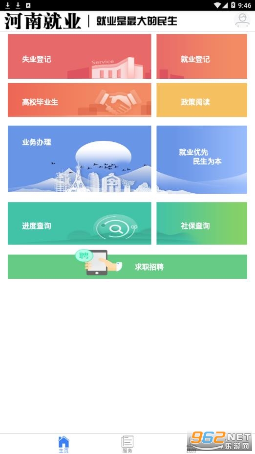 河南就业主要包含就业登记、失业登记、就业困难人员申请、高校毕业生实名登记等就业创业相关公共服务,具有申请在线表单填报,提交电子附件、在线提交审核、审核进度查询、社保查询等相关功能。