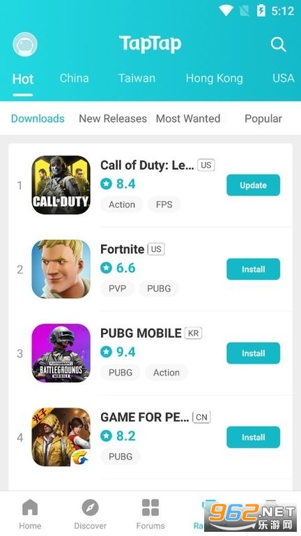 TapTap Global 的主屏幕显示最新的游戏新闻,例如新版本和更新。另一方面,排名选项卡列出了每个地区当前下载次数最多的游戏,您可以从论坛选项卡与其他用户讨论游戏或其他主题。