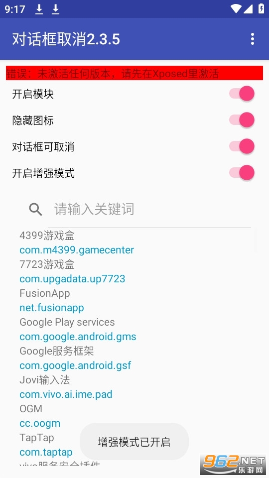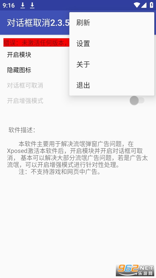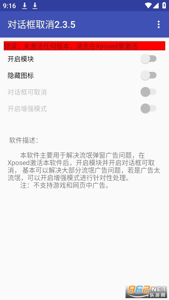 《对话框取消2.3.5》是一款用起来非常不错的广告清楚的工具,导入对应的模块即可完成清理,需要配合xposed才能完成激活使用,能让你的游戏或者是手机应用变得更加的流畅顺滑,免root使用非常的方便,感兴趣的亲们赶紧下载吧。