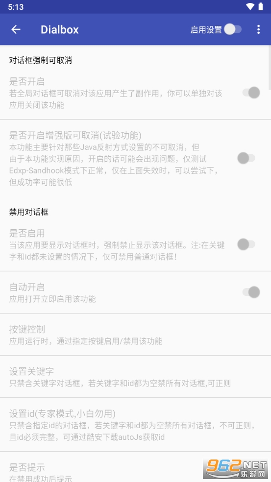本模块可以取消一些强制被设置为不能取消的对话框,比如一些强制更新对话框,及一些广告(有的流氓广告总是把x弄得很小)。