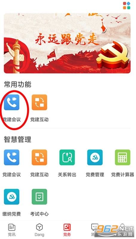 党务:使用各个功能模块;