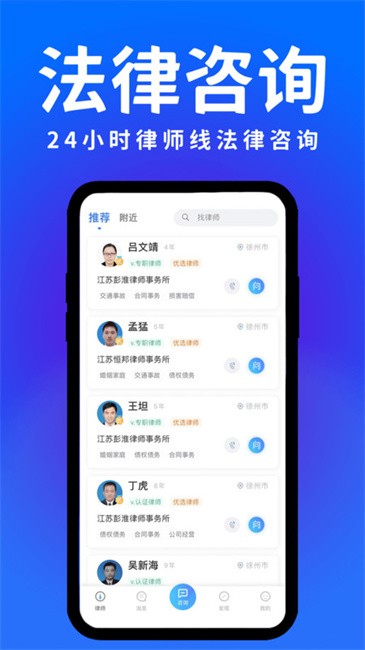 您生活中的法律助手,查看附近律师免费法律咨询,涵盖离婚纠纷、劳动仲裁、交通事故、遗产继承、债权债务、侵权赔偿、房产纠纷、知识产权等领域,精准为您匹配专业律师;大牌律师帮你处理律师函、代写文书、合同审查、法律顾问、打官司,解决你的深层法律需求。
