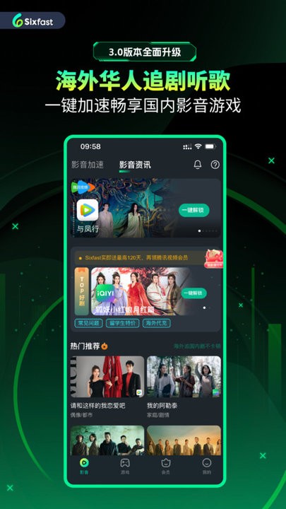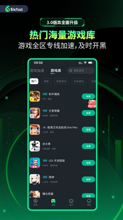 Sixfastapp是为身在海外的华人.留学生.海外出差工作等用户打造的一款加速器。稳定加速国服游戏.各大影视.音乐.直播.体育赛事.商务办公等应用和平台;其技术优势包括专属高速线路.优质骨干网和自研电竞引擎,还提供安全加密传输。