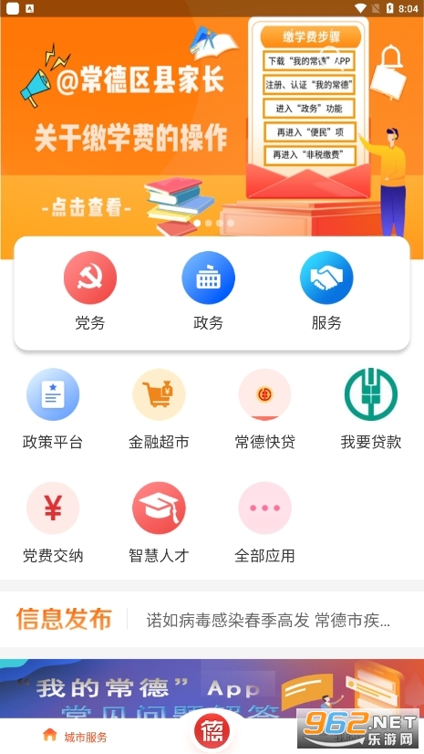 《我的常德app安装》一款最新的本地资讯便民服务软件,在这款软件中能够办理各种不同的食物,生活缴费政务服务等等,还有着最新的信息,软件的操作简单容易上手,有需要的话就快来下载试试吧!