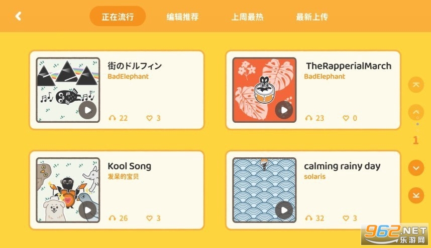 棒!音乐app界面简洁的轻量软件能够搜索海量不同的音乐源,选择性丰富,还有MV在线播放等功能,只需根据需要的节奏将一个个小方块放在合适的位置,当时间线走过,鼓点和琴声就会根据你的指示响起。