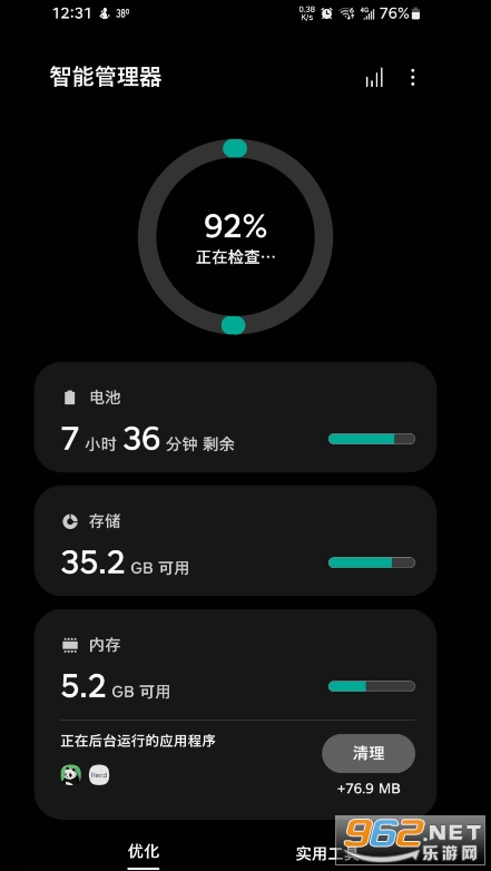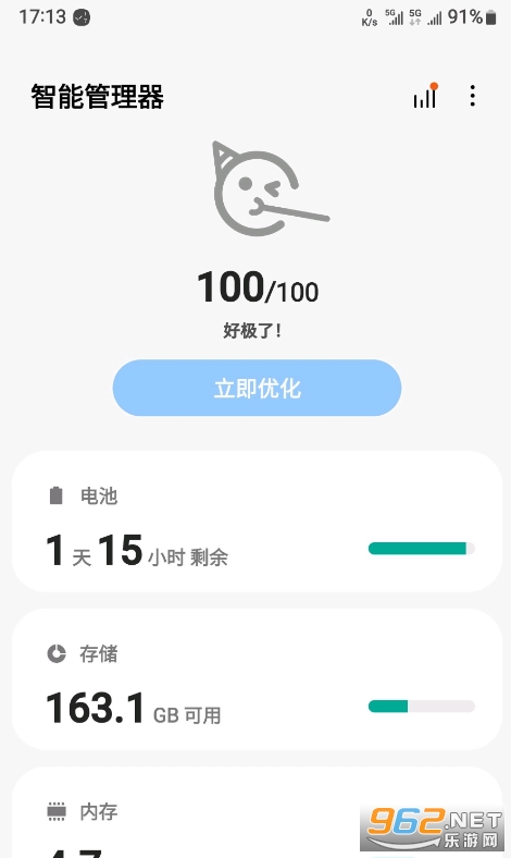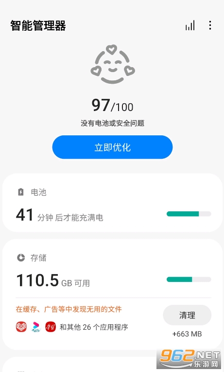 三星的智能管理器包含电池管理、存储系统、RAM管理方法、机器设备安全工作四大项管理方法。