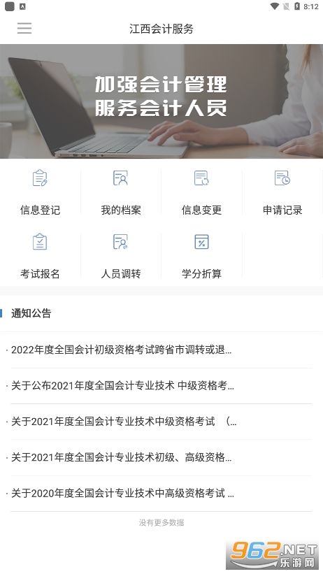 专为江西省的会计行业从业人员打造的一款线上服务平台,里面包含了非常多的功能,让大家可以随时随地在线学习,在线登记个人信息,更改信息,查看通知公告!