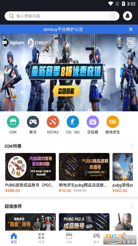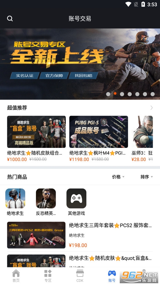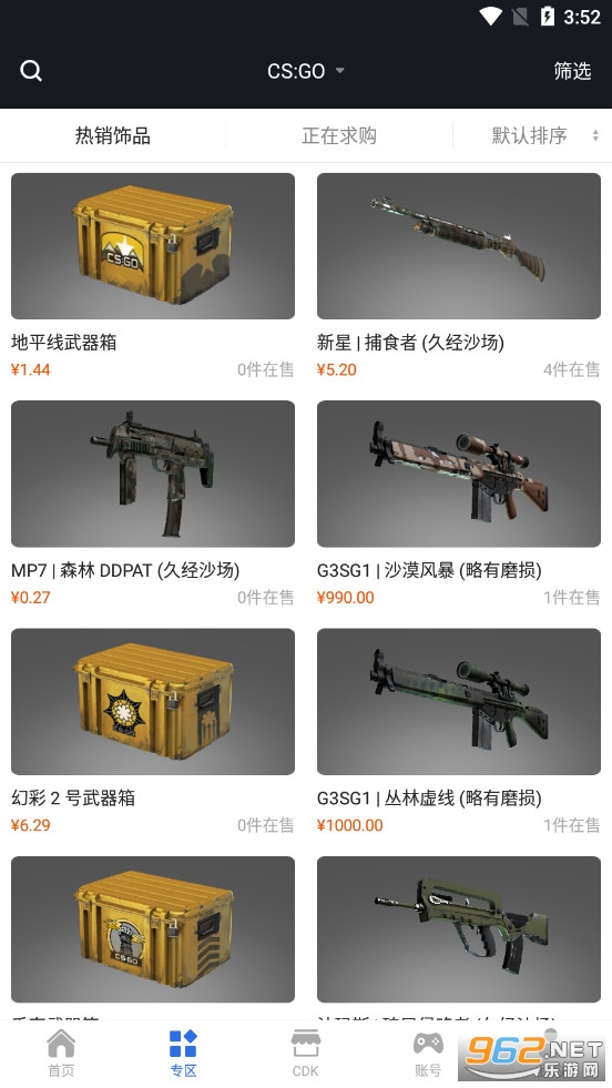 电竞游戏饰品交易平台,朋友们可以在平台中购买游戏CDK、账号、武器、皮肤、箱子等等,优惠多多,福利多多,有需要的朋友可以下载试试。