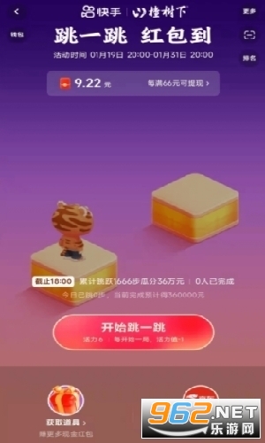 4、“跳一跳 红包到”将曾经风靡全网的跳一跳小游戏融入春节活动,以简单玩法激发用户的比拼欲望。