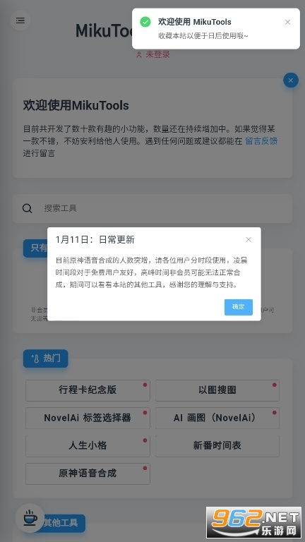 2、涵盖了行程卡纪念版,以图搜图,NovelAi、原神语音合成等热门的工具以及一些其他工具;