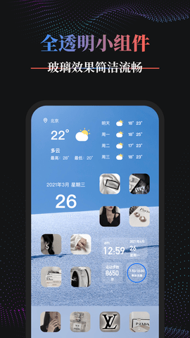 手机系统面板、今日流量统计、运动步数、精准天气助手、图片、虚拟时钟等功能应有尽有一键安装自由切换。