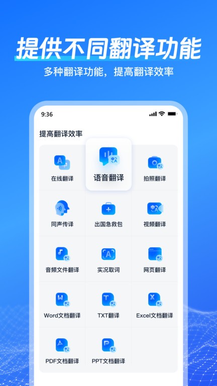 这款应用专注于文本翻译、语音翻译、同声传译和拍照翻译