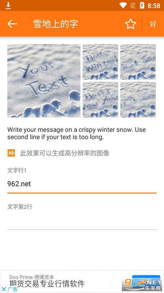 可以在手机上生成雪地上的全新字迹,输入文字或者特殊符号,