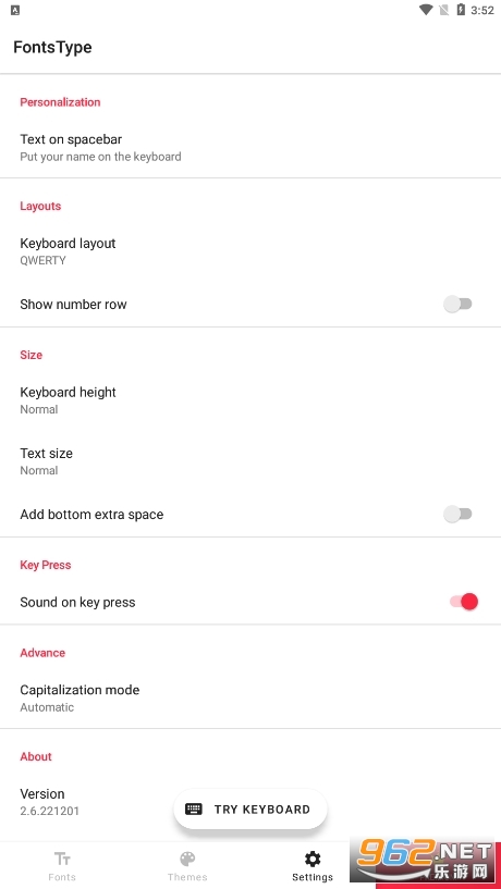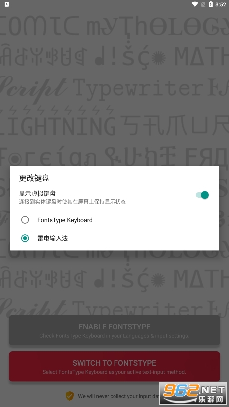《FontsType最新版》是一款十分专业的字体键盘的软件,软件的用法简单且功能十分的丰富,用起来给人的感觉也十分的不错哦,而且可以自定义你的皮肤让你有着全新的操作体验以及视觉上的感受,感兴趣的亲们赶紧下载吧。