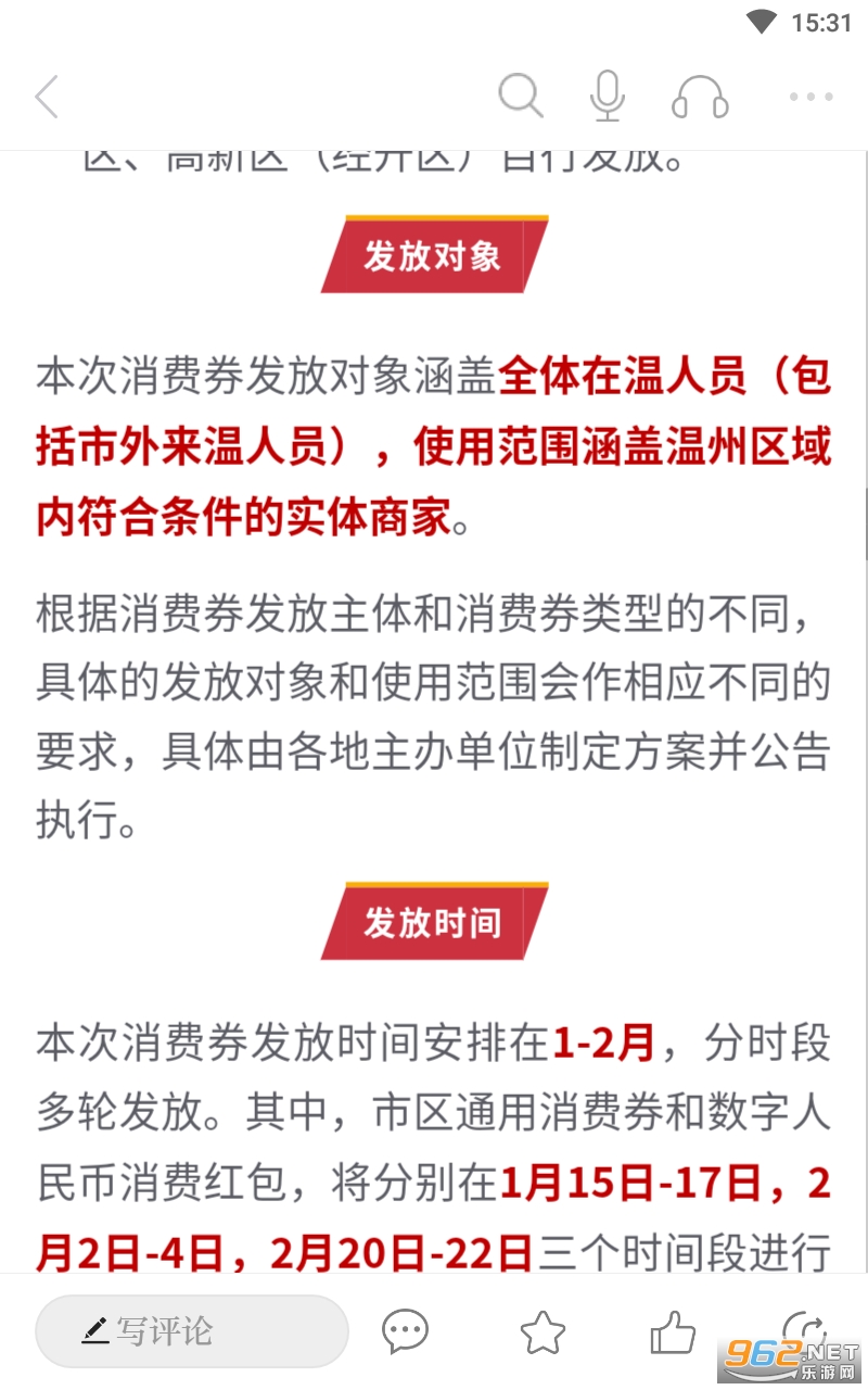 总体来说是一款非常不错的领2026开年消费券的平台,温州地区的,温度新闻也是温州本地化的新闻平台,有需要的亲们可以现在下载等待着活动开启,喜欢的亲们赶紧下载吧。