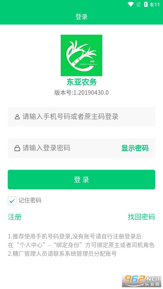 东亚农务是一个提供给糖厂专门使用的App。东亚甘蔗生产综合服务系统,结合了糖厂司机农民的综合应用。通过这个APP,不管是相关行业的司机或者是农民都是可以在线登记查看自己的数据资料的。