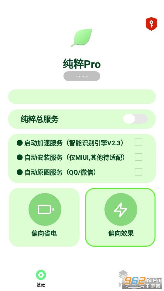 APP 默认下纯粹服务处于关闭状态,如果我们需要开启这项服务,还需要先点击右上角的钥匙按钮,开启一部分系统权限才行。