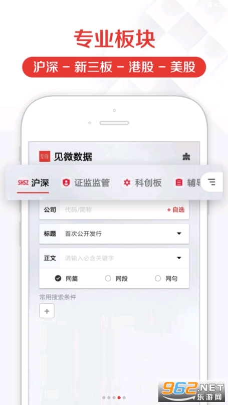 汇集14大检索模块,沪深公告、证监监管、科创板、辅导信息、新三板、港股中英文、美股中英文、债券、基金、法律法规、公众号精选以及投资者关系