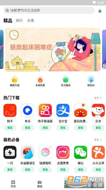 《乐商店应用中心》是由联想推出的一款官方安卓应用下载工具。绿色安全,使用方便,用户可以通过此平台一键下载安装自己感兴趣的应用或者游戏,每日都会有热门推荐,还有专业的排行榜,让你了解当前最热门的应用,自动化安装,省心更深流,还有丰厚的礼包和福利,上线就能领取!