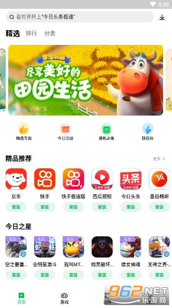 开启自动化安装功能,只需要找到喜欢的应用或游戏点击下载按钮,即可自动完成下载、安装一系列流程,让您的操作更加得心应手