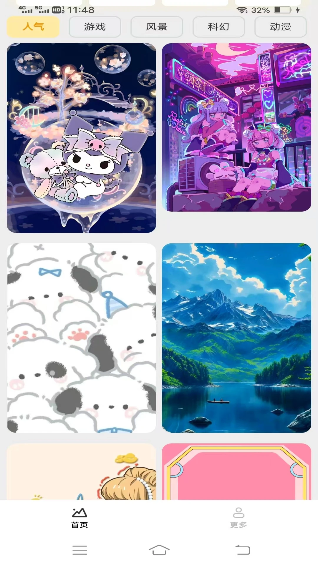 1、进入应用首页,用户可通过顶部导航栏轻松切换不同风格分类,浏览如可爱、简约、艺术等多种主题的海量壁纸合集。