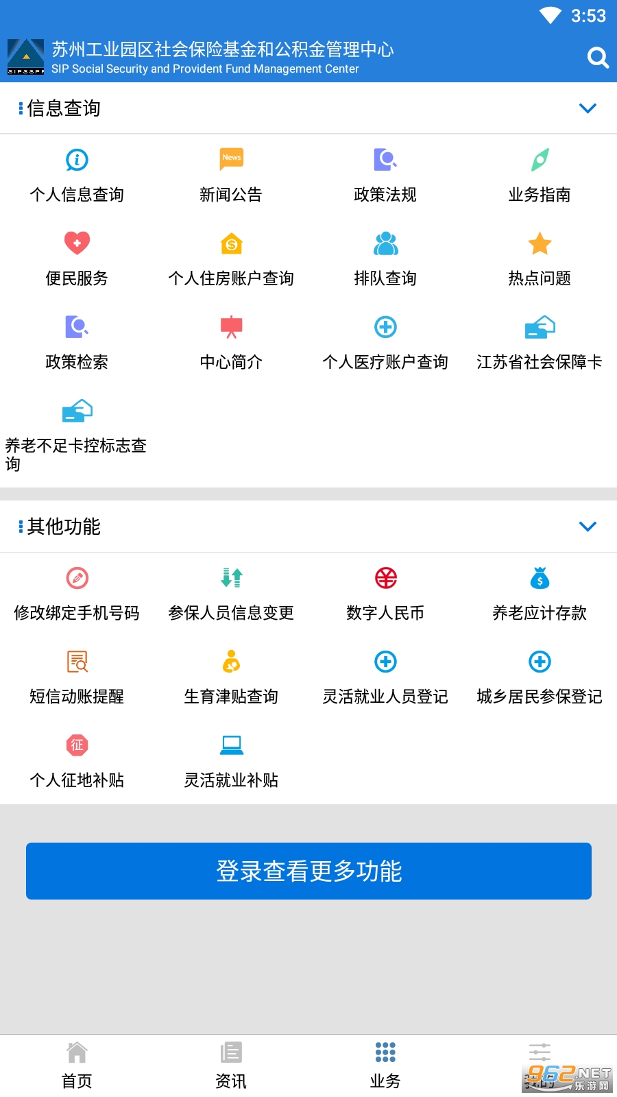 1.社会保险(公积金)参保员工:个人基本信息查询、当前余额查询、新闻公告、大厅排队情况查询等服务。