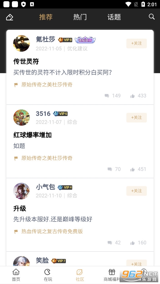 一款非常不错的传奇手游社区软件,在这里你可以获取各种传奇游戏,同时还有着各种福利礼包等你领取,在这里和其他的玩家聊游戏,交朋友,一起畅玩传奇,还有着实时更新的游戏资讯,推荐给有需要的用户。