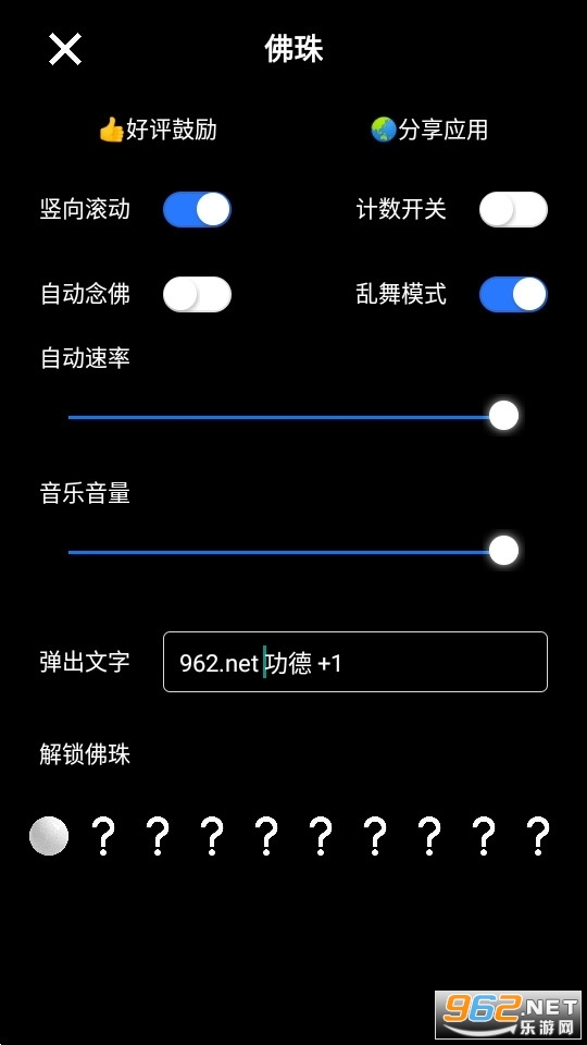《佛珠》继电子木鱼以后全新的赛博功德工具电子佛珠闪亮登场,在这里你可以自由的设置佛珠的样式和大小,然后通过转动佛珠来积累功德,软件的操作轻松简单,有积累功德需要的用户快来下载试试吧!
