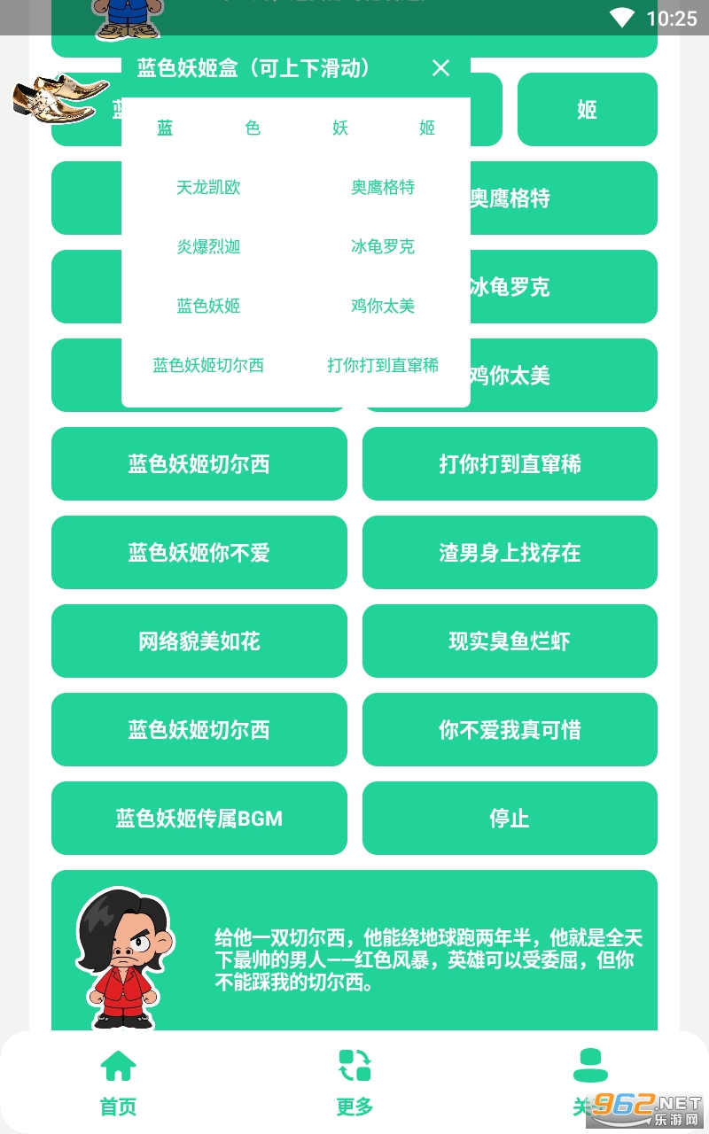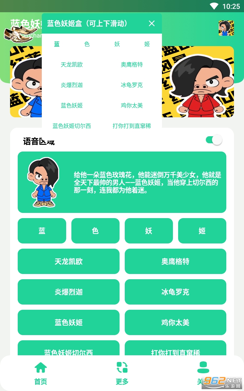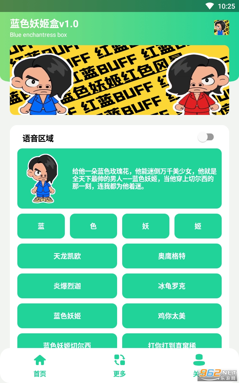 总体来说是一款用起来非常不错的恶搞语音盒子,现在网络很红的梗文化“蓝色妖姬”,有着丰富的语音类型以及简单的操作,喜欢的亲们赶紧下载吧。