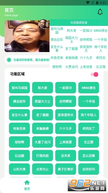 马保国保国盒是一款很不错的趣味恶搞的语音软件,这里带来的是马保国的经典语录语音包工具,基本的操作方式很简单,点击对应的文字,就能够播放不同的马保国大师的语音内容,超级魔性。