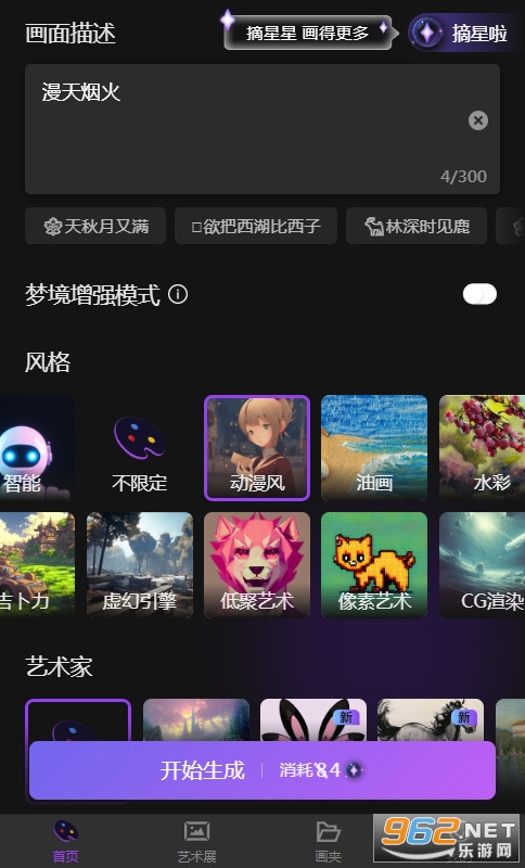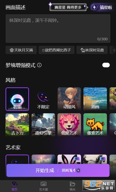 盗梦师ai绘画是一款非常好用的AI绘画软件,里面提供了丰富的素材和各种绘画模板,能够帮助用户更好的创作,制作出与众不同的绘画作品,功能十分丰富,而且这款软件摒弃了传统的绘画方式,通过自己的AI指令,即可绘画出想要的图案,使用过程非常流畅,所有的功能都可以随便体验。