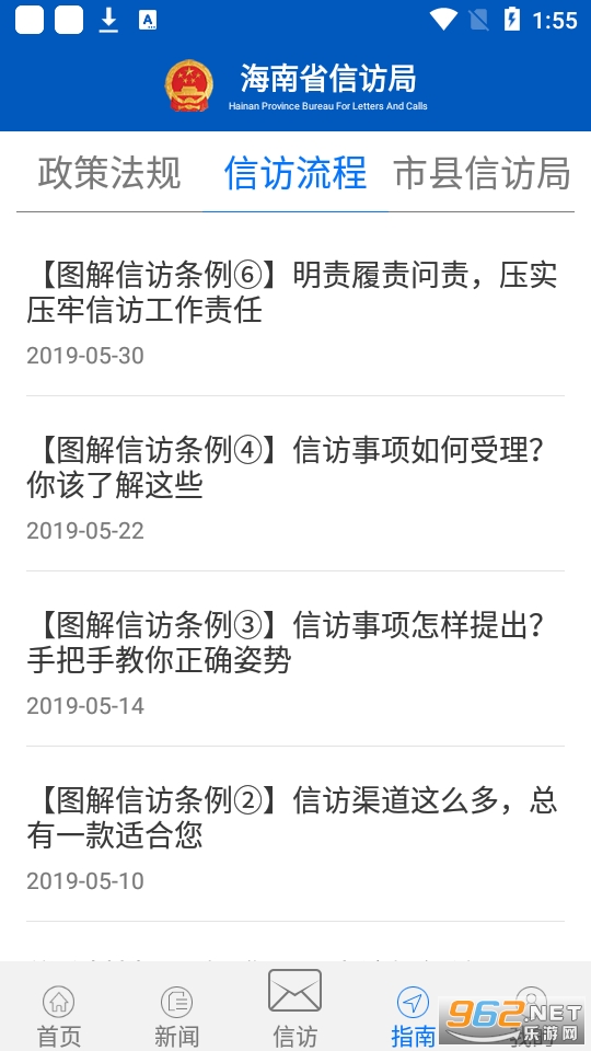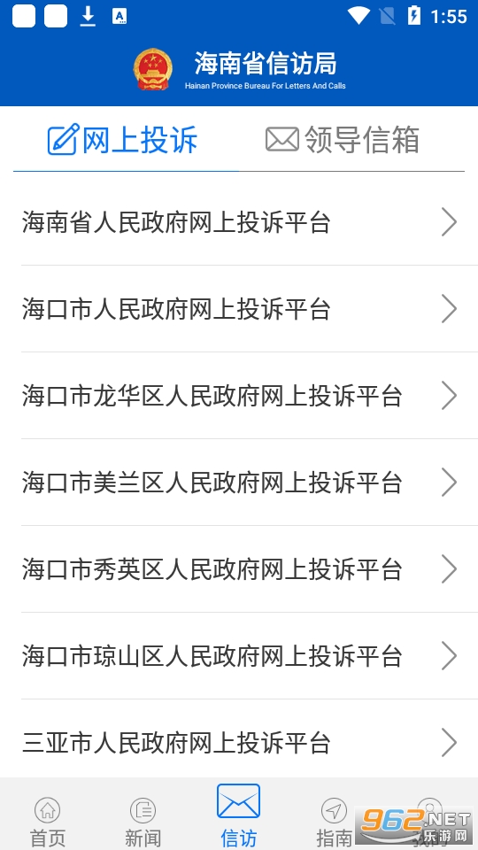 《海南信访app》是一款非常实用的信访类的软件,由海南省信访局面对海南省的老百姓们打造。可以随时在网上进行信访投诉,针对不同的区域设置了独立的投诉平台,还能够查看信访相关的指南以及新闻信息,有需求的话就快来下载吧!