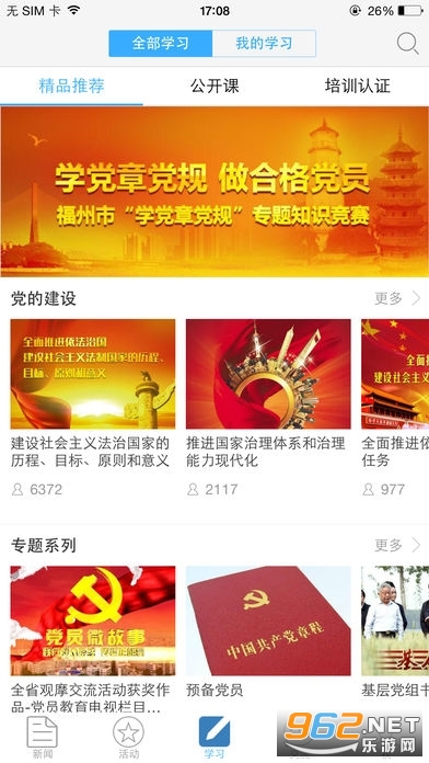 3、学习教育:包括党教视频、学习计划两个栏目,为党员群众提供丰富多样的学习资源