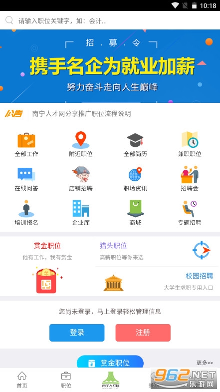 在南宁人才网app中,无论是求职者还是公司招聘发布都可以在这里做到,在这个南宁人才网平台上,分布着众多而且即时更新的单位招聘信息,让你能够有更加综合的良好判断,去参与其中,并顺利的入职自己心仪所属的岗位。