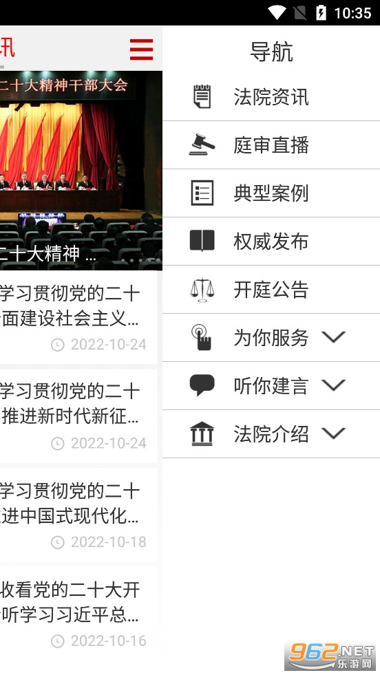 《最高人民法院app》是最高人民法院推出的最高人民法院网站手机客户端,公开、公正、为民、权威,软件中有着法院资讯、庭审直播、典型案例、权威发布、开庭公告、案件查询、执行查询、诉讼服务、申诉信访、法院公告等众多的栏目。