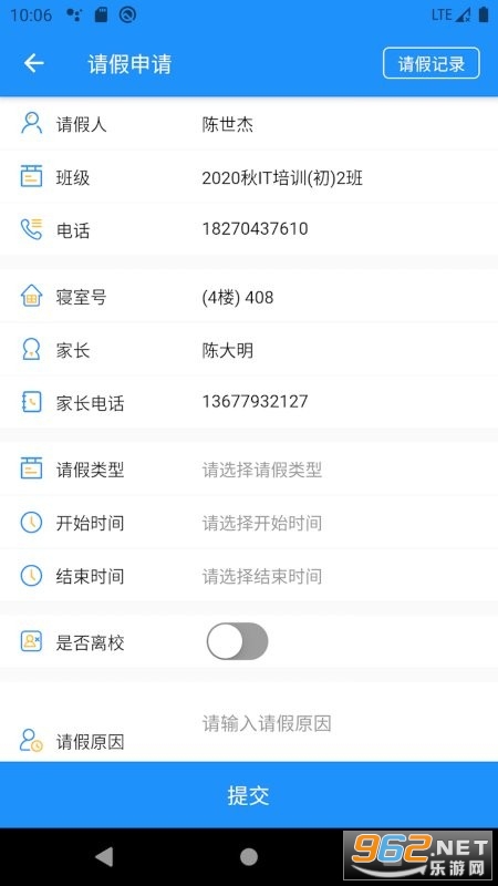 随时更新,学生动向,用户在使用软件的过程中,遇到的各种问题都可以通过软件来进行专业的和教师以及学校进行回复和沟通,所有需求都可以在线完成,请假更方便。