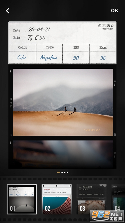 不同的是,NOMO 采用了更换相机的玩法,而 FIMO 的模式是更换胶卷。出道至今,NOMO 已经推出了十余款相机,如果说订阅 NOMO 像是「坐拥多款相机」,那么 FIMO 给我的感觉是「一台相机 + 一堆胶卷」。点击胶卷,你甚至可以看到负片,当然,点进去还是正常的照片。