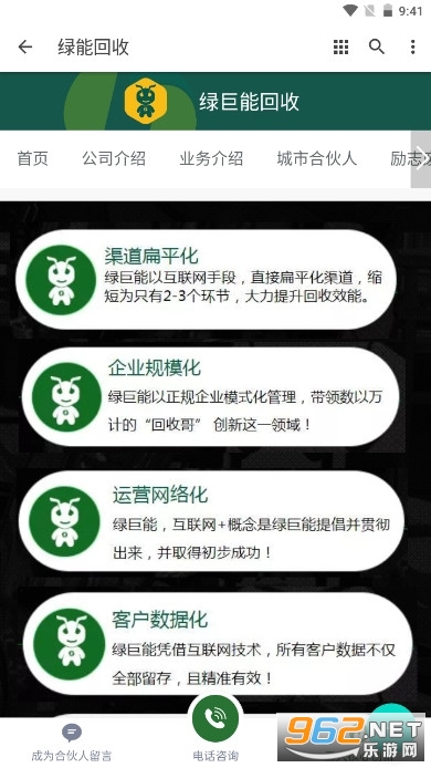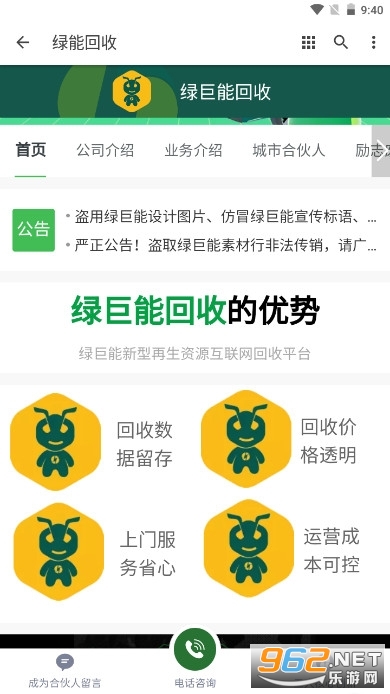 绿巨能回收是一家废品回收服务提供商,自2026年进入废品回收领域,凭借创新的互联网思维对传统废品回收行业进改造回收 ”商业模式 。一方面从互联网服务思维出发 ,有效的将废品回收推向品牌化运作另一方面通过 “互联网 +废品回收 ”的网络化重构 ,以用户思维收的效率