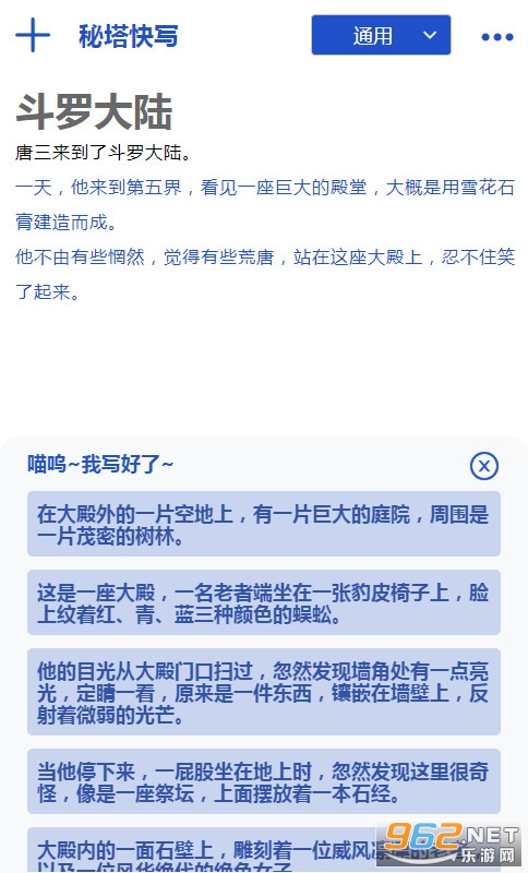 《秘塔快写》是一款有趣的ai续写软件,你可以在这里续写各种文本和开头,让你找到更多的思路,你也可以将已经有的作品放入其中来进行生成。秘塔快写目前只有网页版本,下方已经提供了相关的链接。想要体验的话就快来试试吧!