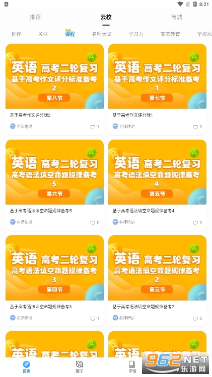 此款APP的重点功能在于“云校”板块,在这里家长可以全方位了解学生全部的学习情况。包块最近各科学习的大致情况,哪些学科是否稳定,哪些学科是否波动,都能一目了然的了解到具体情况。针对每一场考试的数据也有详细的记录,不仅能看到学生整体的学习状况,还能精确到各个科目的数据。最重要的是通过大数据分析,可以找到学生各个科目的薄弱环节,并整理出薄弱知识点,最后有针对性的对学生的薄弱点进行拔高巩固。此外还提供很多学习资源帮助学生更好的提高成绩。