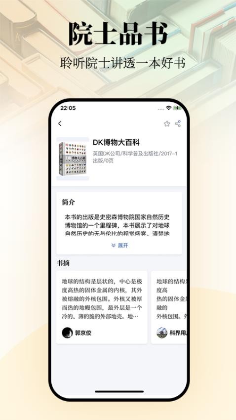 3、专家解读与品鉴内容:提供院士、学者等专业人士的讲书音频,帮助读者深入理解书籍内涵。