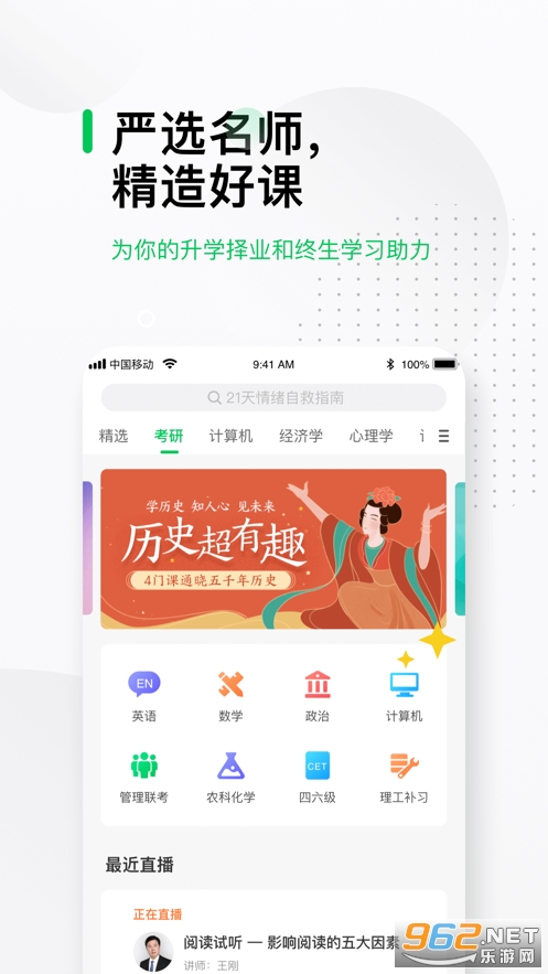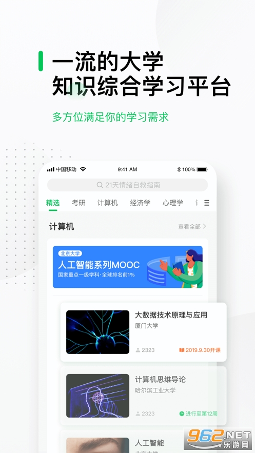 来自985高校的优质课程,从基础科学到文学艺术、哲学历史到工程技术、经管法学到农林医药,内容应有尽有,完全免费。