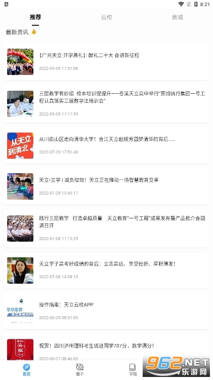 天立云校app是一款智慧教育平台,平台拥有成绩查询,学倩追踪,精准提升,云校资源,圈子等等功能服务,可以更好的家校共育,帮助孩子更好的学习成长。
